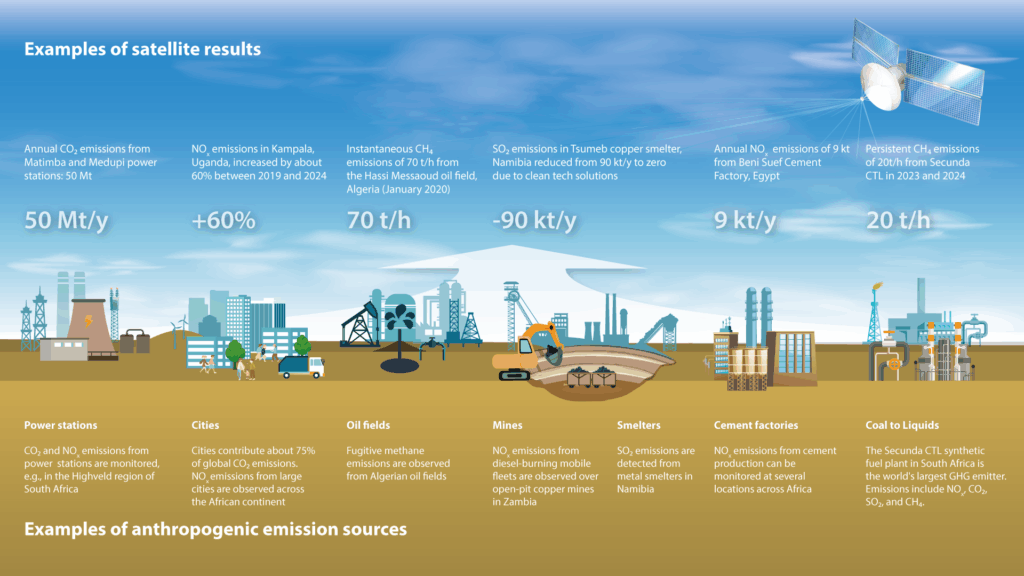 The Highveld region in South Africa includes multiple large emitters of nitrogen dioxide and greenhouse gases, such as coal-fired power plants and the Secunda syntetic fuel plant. Emissions from there sources can be monitored using satellite data.